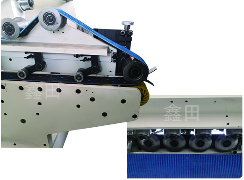 ■ Paper entering section adopts spring pressure wheel to load cardboard, limit device is equipped in the pressure wheel, and the interval between the wheel and down conveyor can be adjusted independently, make sure high paper feeding precision.